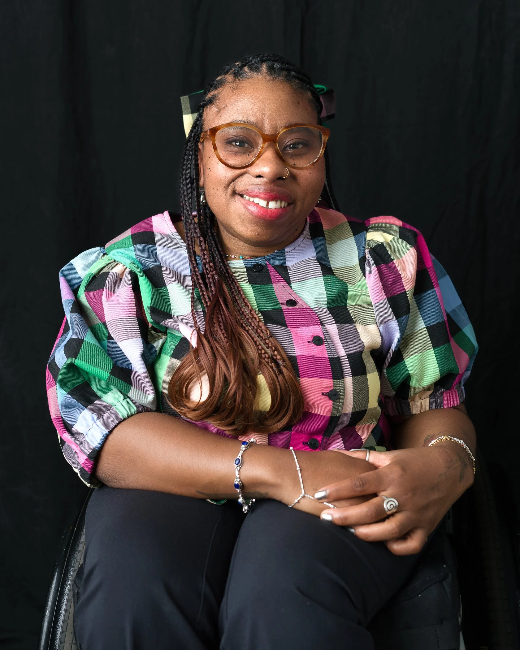 Dugger’s work explores identity, disability, and Southern heritage through a reimagined Southern Gothic lens. As a disabled Black woman, she navigates themes of isolation, desire, and visibility, blending vulnerability, beauty, and the grotesque. Her figures—exaggerated, anthropomorphic stand-ins for her own body—are adorned with pearls, frosting, and glitter, merging opulence with decay.